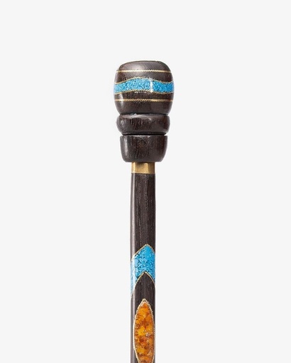 عصا عكاز ابانوس مزين شبيه الكهرمان واللازورد