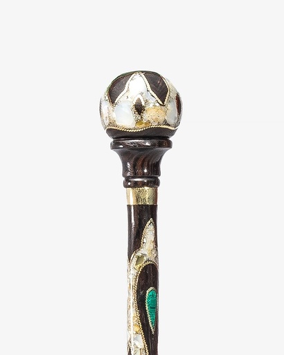 عصا عكاز ايبانوس مزخرف بصدف مقبض دائري