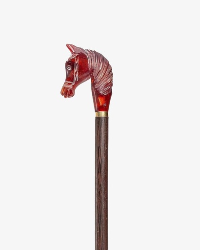 عصا عكاز خشب الإبانوس مزين رأس الحصان