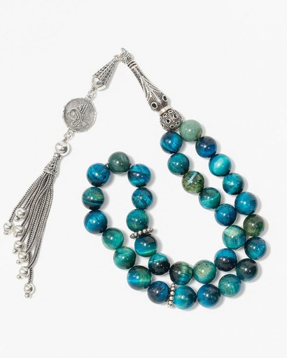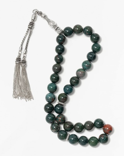 سبحة فضة حجر عقيق الاخضر الفاخر