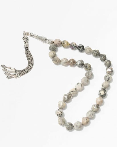 سبحة فضة يشب بعروق رمادي الفاخرة