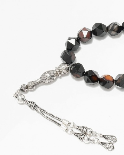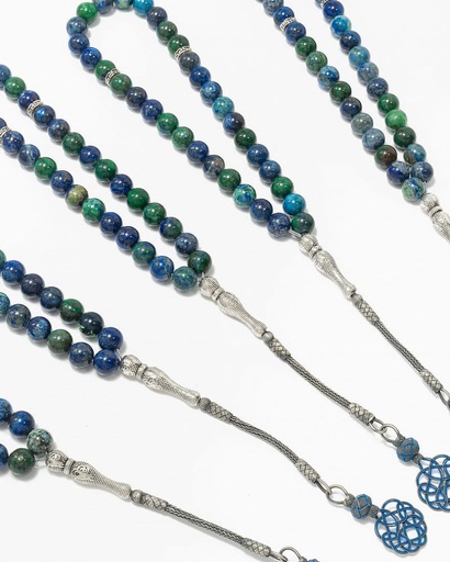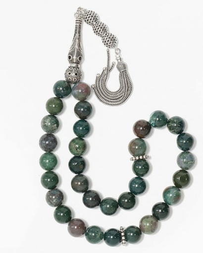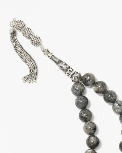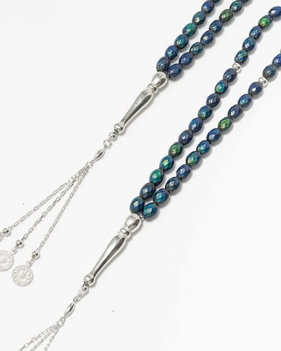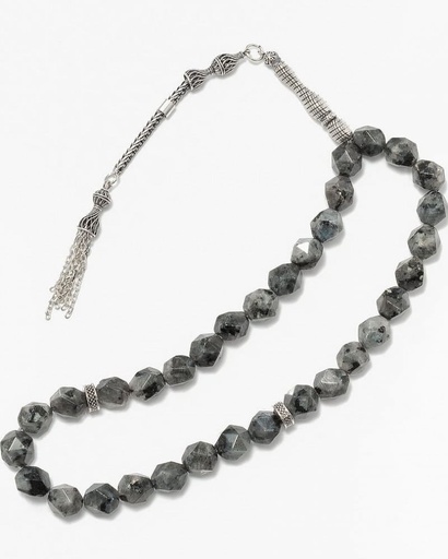 سبحة فضة حجر لابرادوريت بقصة الاماس