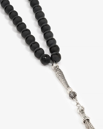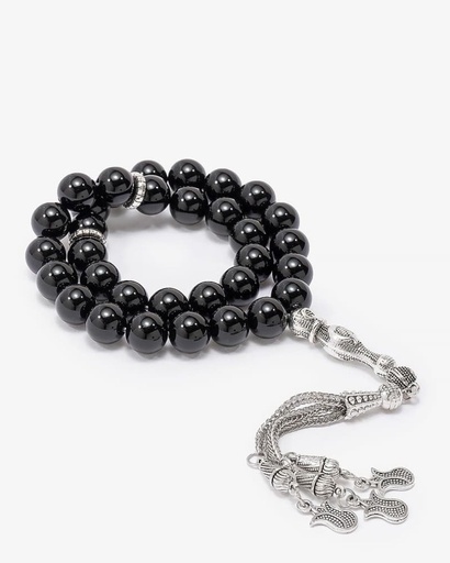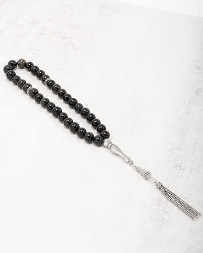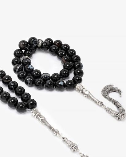 سبحة فضة عقيق اسود بعروق