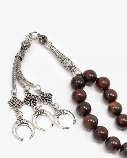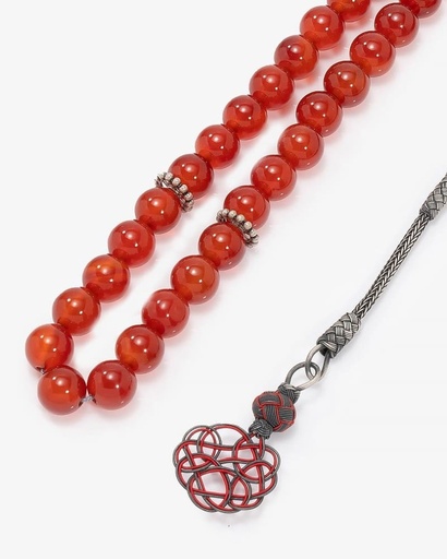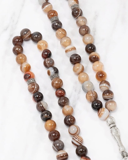 سبحة فضة عقيق بلون جملي