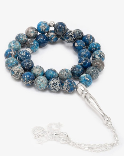 سبحة فضة بحجر يشب الملون الانيق