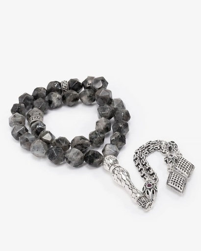 سبحة فضة حجر لابرادوريت الرمادي الفاخر