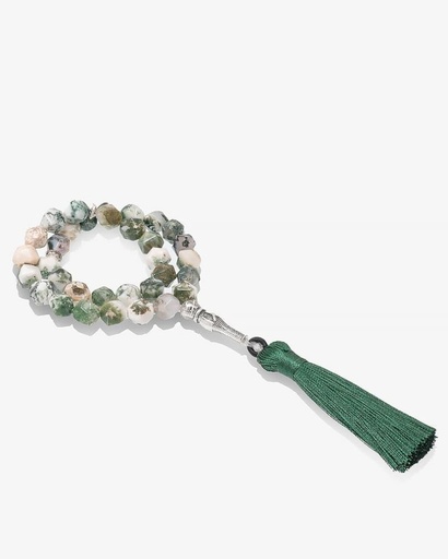 سبحة حجر كريم عقيق اخضر وابيض
