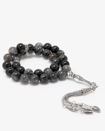 سبحة حجر كريم يشب بعروق رمادية