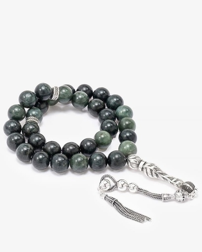 سبحة فضة حجر سيرافينيت أخضر طبيعي