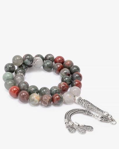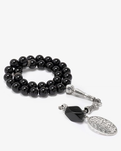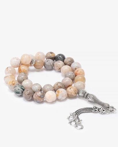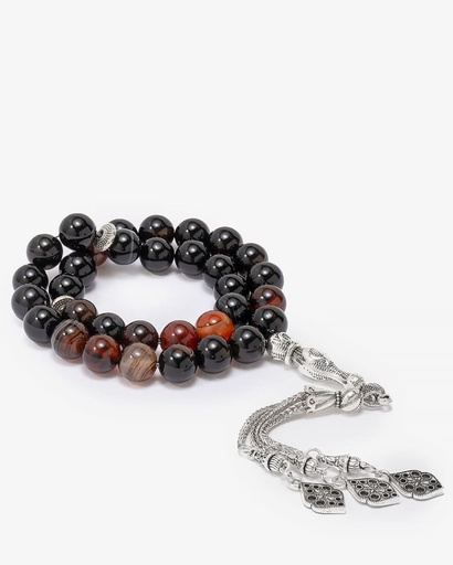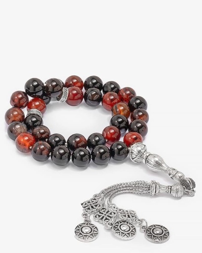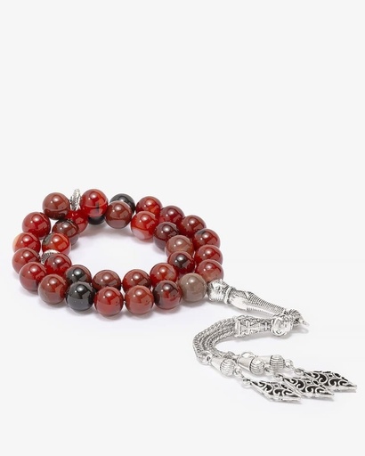 سبحة فضة عقيق يمني كبدي 33 خرزة