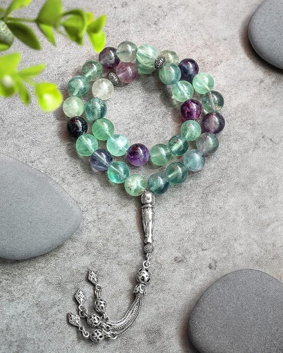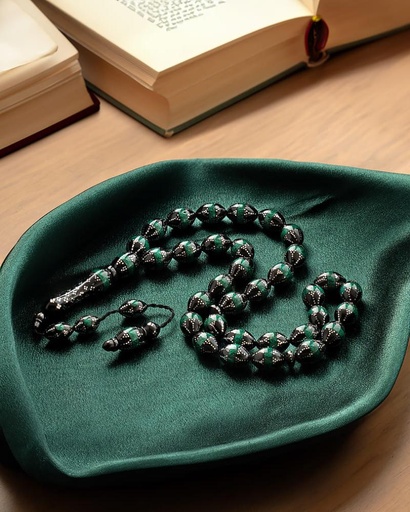 سبحة كوك مزخرفة بالفضة الخالصة وملاكيت طبيعي