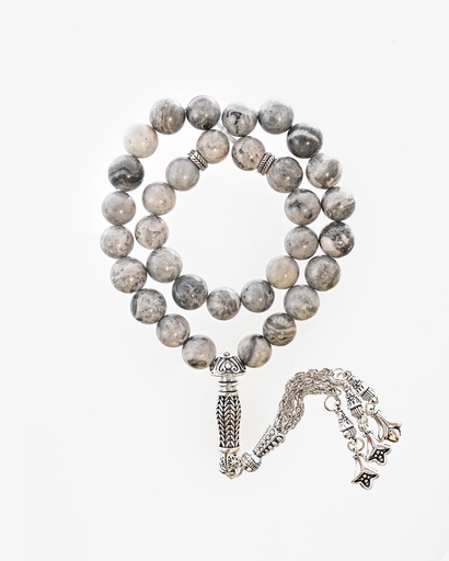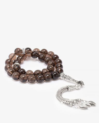 سبحة انيقة بحجر كوارتز دخاني شفاف