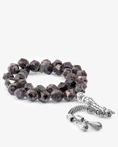 سبحة حجر رمادي لابرادوريت بقصة الاماس