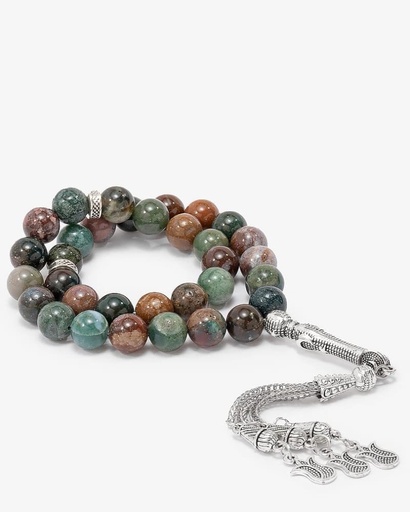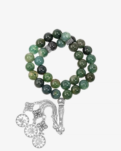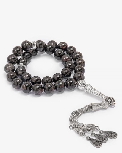 سبحة فضة حجر يشب رمادي 99 خرزة