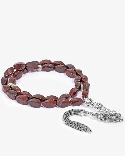 سبحة فضة حجر يشب بلون بني