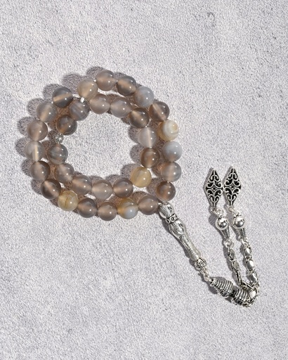 سبحة حجر عقيق طبيعي رمادي