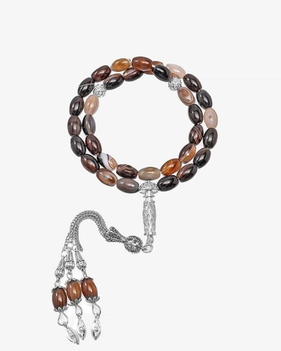 سبحة حجر عقيق بني بعروق فاخرة