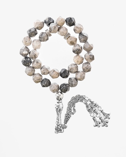 سبحة حجر لابرادوريت رمادي بقصة الاماس