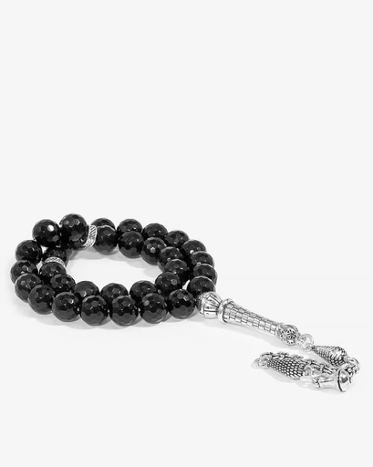 سبحة حجر عقيق اسود لامع بقصة سداسية