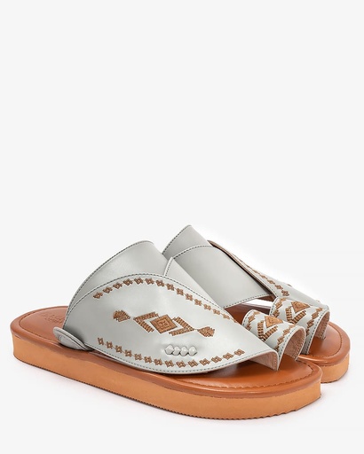 صندل عصري بتطريز فاخر ابيض وزيتي