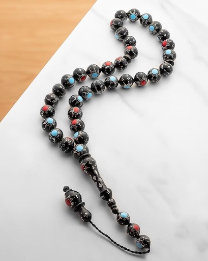 سبحة كوك فيروز ومرجان مطعم بالفضة