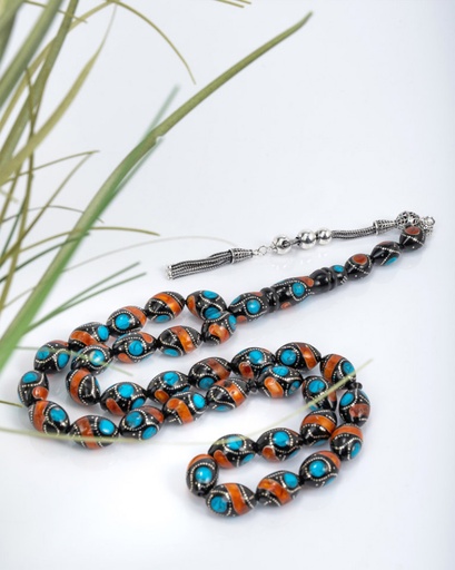 سبحة كوك فيروز ومرجان مطعم بالفضة