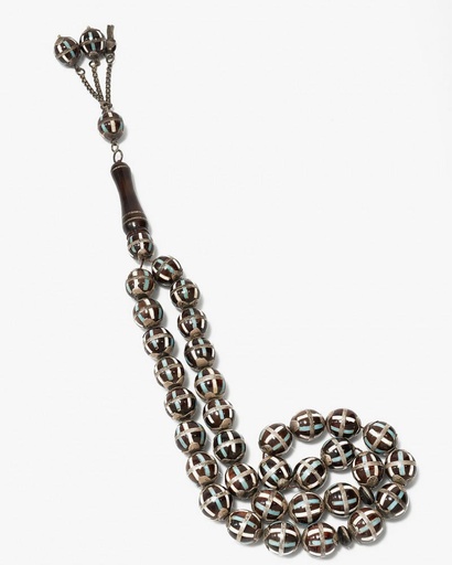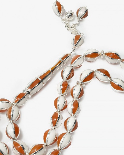 سبحة كوك مزخرفة بفضة ومرجان احمر
