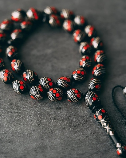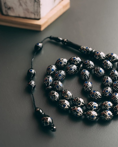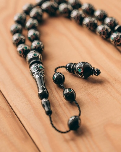 سبحة كوك مزخرف بالفضة وحجر اللبيس