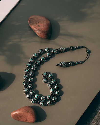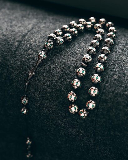 سبحة كوك منقوش بالفضة مزينه بفيروز ومرجان