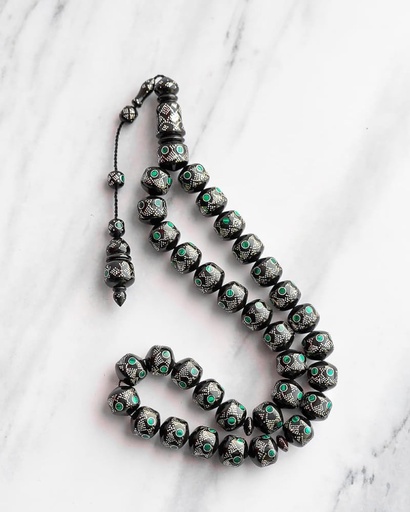 سبحة كوك منقوش بالفضة وحجر مالاكيت