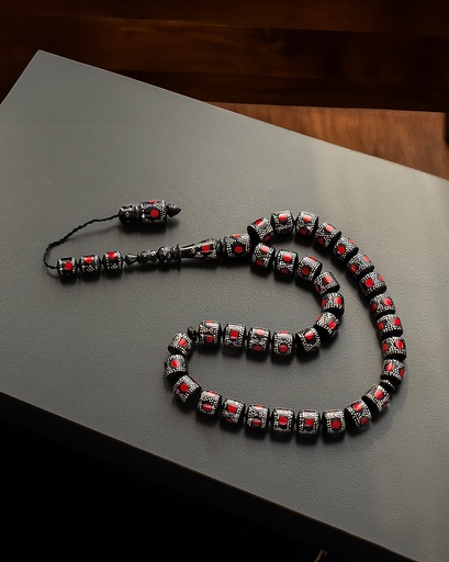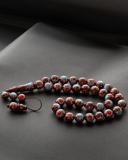 سبحة كوك منقوش بالمرجان والفيروز الفضة
