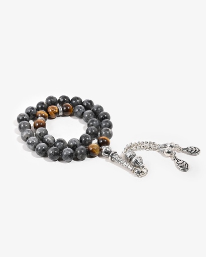سبحة كوك مزين بالفضة شبية الكهرمان والفيروز
