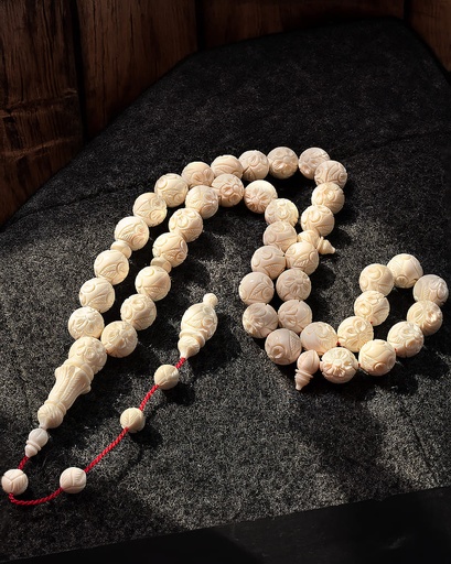 سبحة نادرة دائرية من العاج (ناب الفيل) 45 خرزة