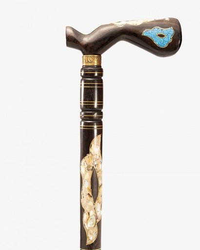 عصا عكاز بخشب الابانوس بالصدف والفيروز