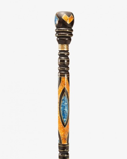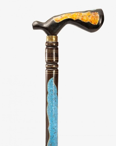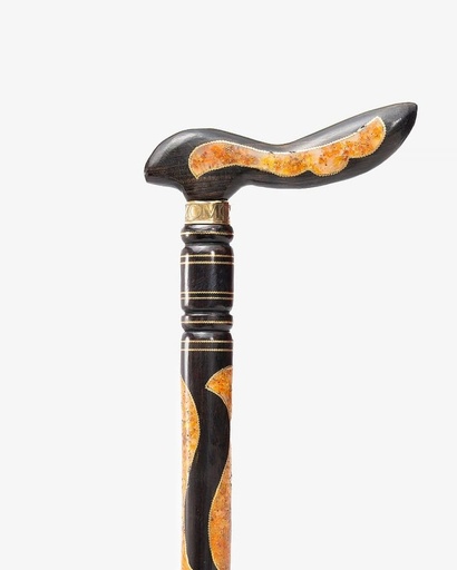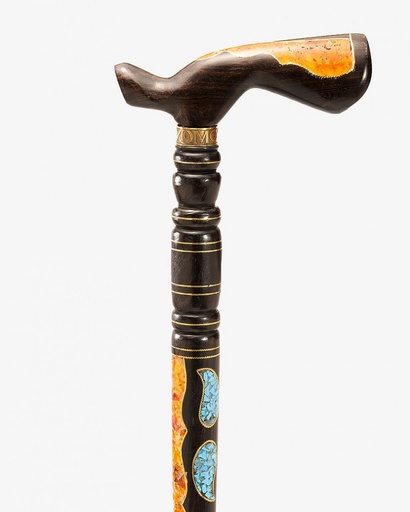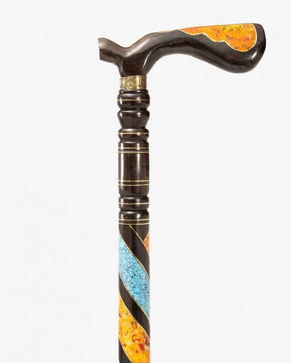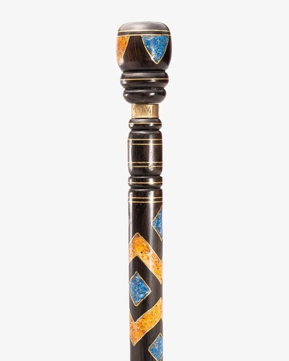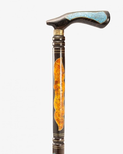 عصا عكاز الابانوس مزين شبيه الكهرمان والفيروز