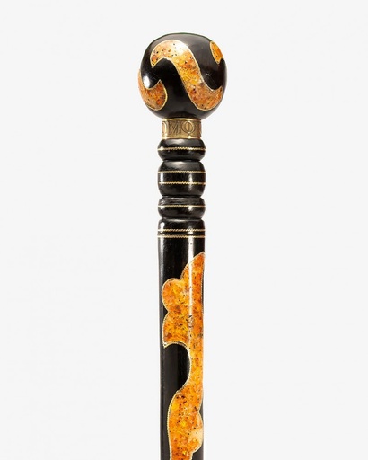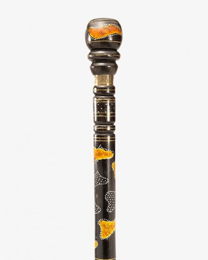 عصا عكاز بخشب الابانوس مطعم بالصدف