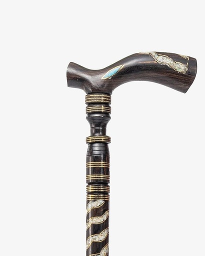 عصا عكاز ايبانوس مزخرف شبيه لازورد وصدف طبيعي