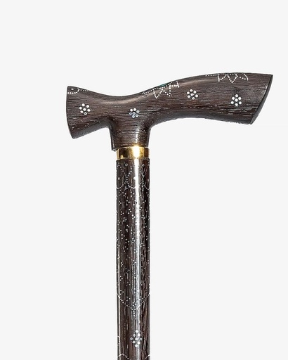 عصا عكاز ايبانوس مزخرف صدف طبيعي