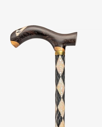 عصا عكاز خشب ايبانوس بصدف صناعي