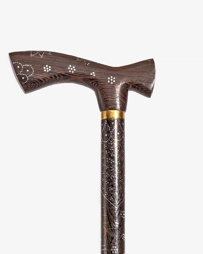 عصا عكاز ابانوس مزخرف بالصدف الطبيعي