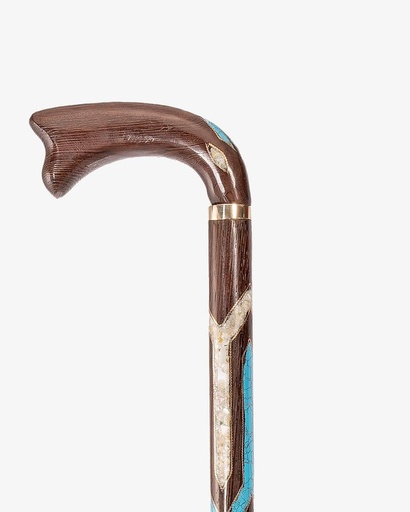 عصا عكاز ايبانوس مزخرف شبيه الفيروز والصدف