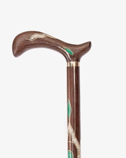 عصا عكاز ايبانوس مزخرف شبيه ملاكيت وصدف طبيعي