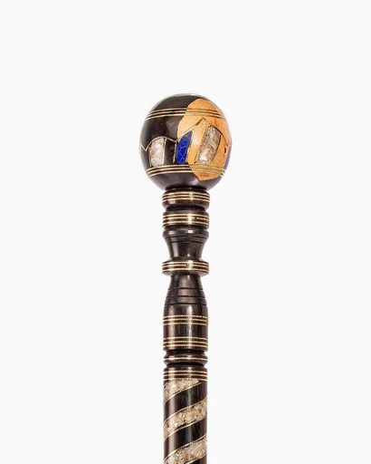 عصا عكاز ايبانوس مزين شبيه لازورد وصدف طبيعي
