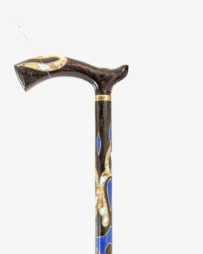 عصا عكاز ايبانوس منقوش بصدف طبيعي ولازورد