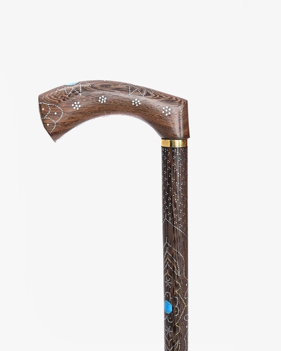 عصا عكاز خشب ايبانوس فيروز وصدف طبيعي