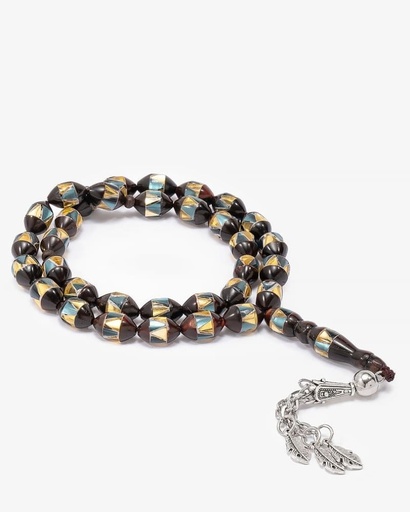 سبحة خشب كوك مطعم بمرايا 33 خرزة