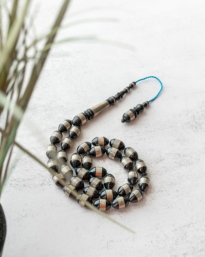 سبحة كوك طبيعي مزخرفة بمعدن بيضاوي