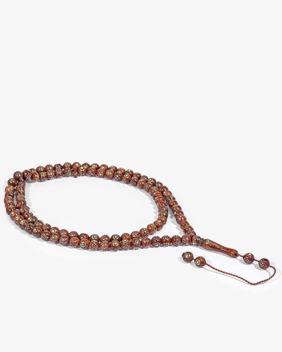 سبحة كوك طبيعي منقوش بمعدن 99 خرزة