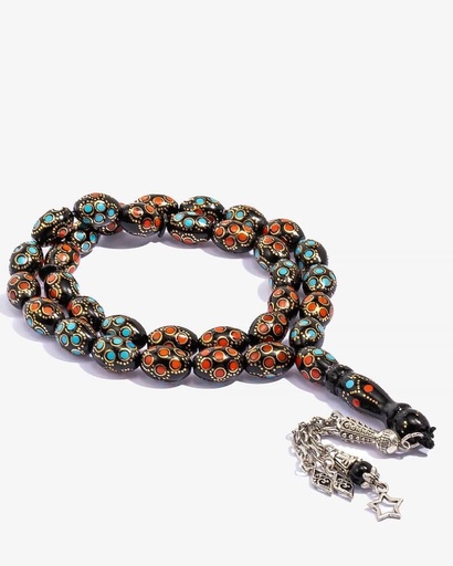 سبحة كوك طبيعي منقوش بمعدن فاخر