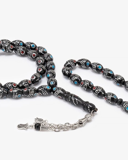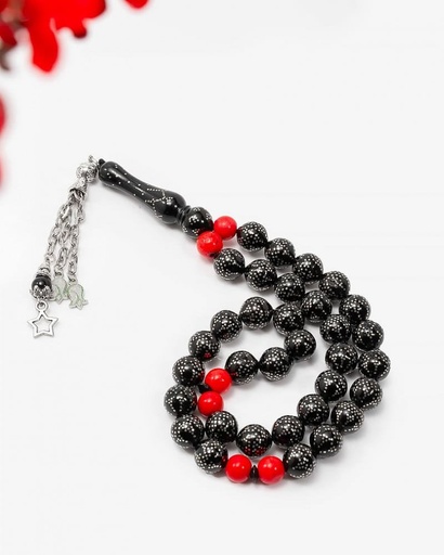 سبحة كوك منقوش بفيروز ومرجان احمر